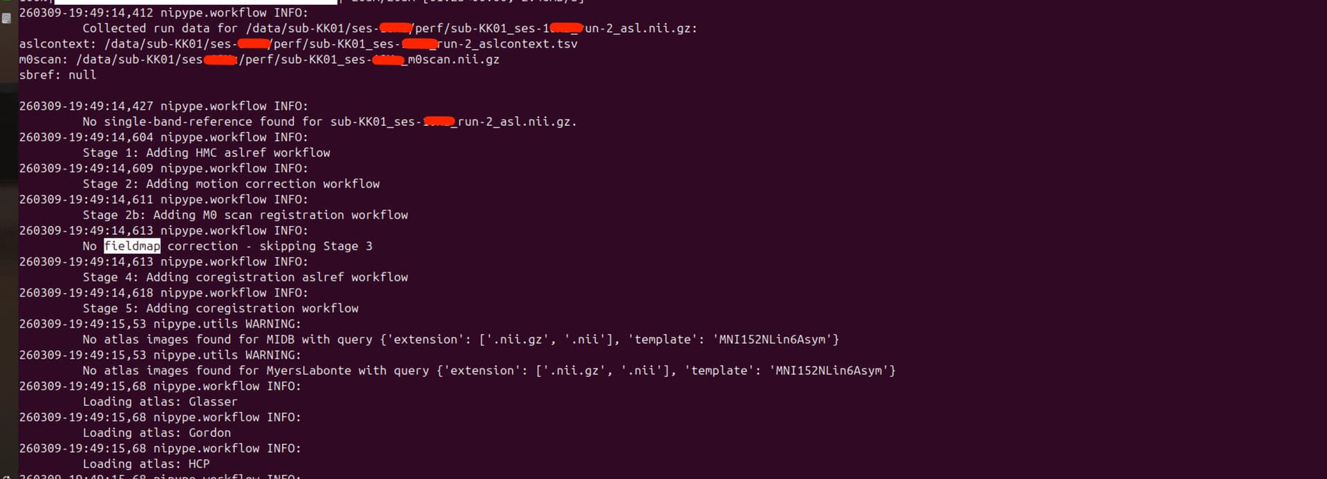 I am using aslprep version 26.0 to preprocess pCASL data (Siemens) and am having a bit of trouble. The program does not seem to recognize the fieldmaps.