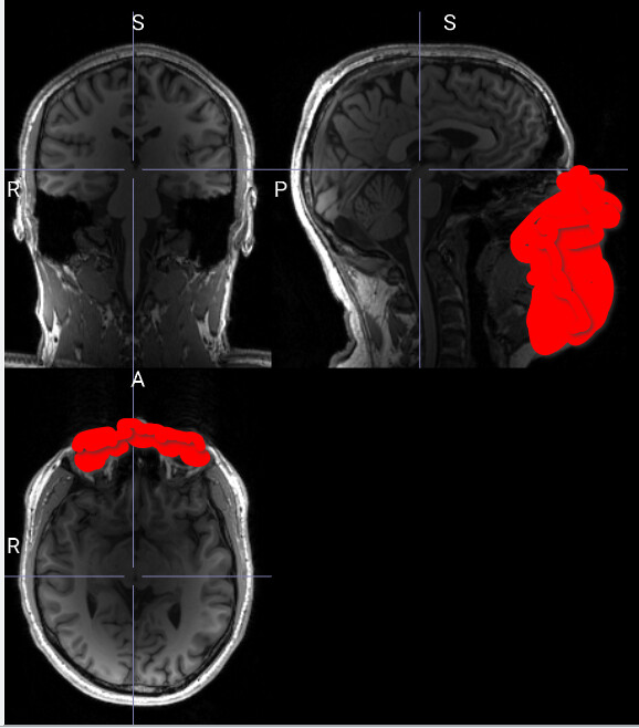 However, the output was really bad (missing surfaces for a lot of brain regions and/or artifacts like surfaces out of the cortex and or pials that belong to the wrong hemisphere). I think that’s all due to the non-uniformity in my T1 images (see above, the occipital areas are brighter than the rest of the brain).