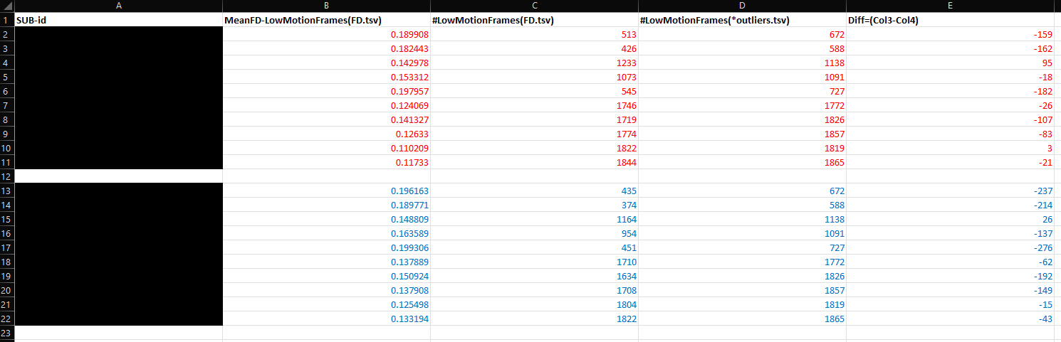 echo -e "SUB-id\tMeanFD-LowMotionFrames(FD.tsv)\t#LowMotionFrames(FD.tsv)\t#LowMotionFrames(*outliers.tsv)\tDiff=Col3-Col4" > "$OUTPUT_TSV"