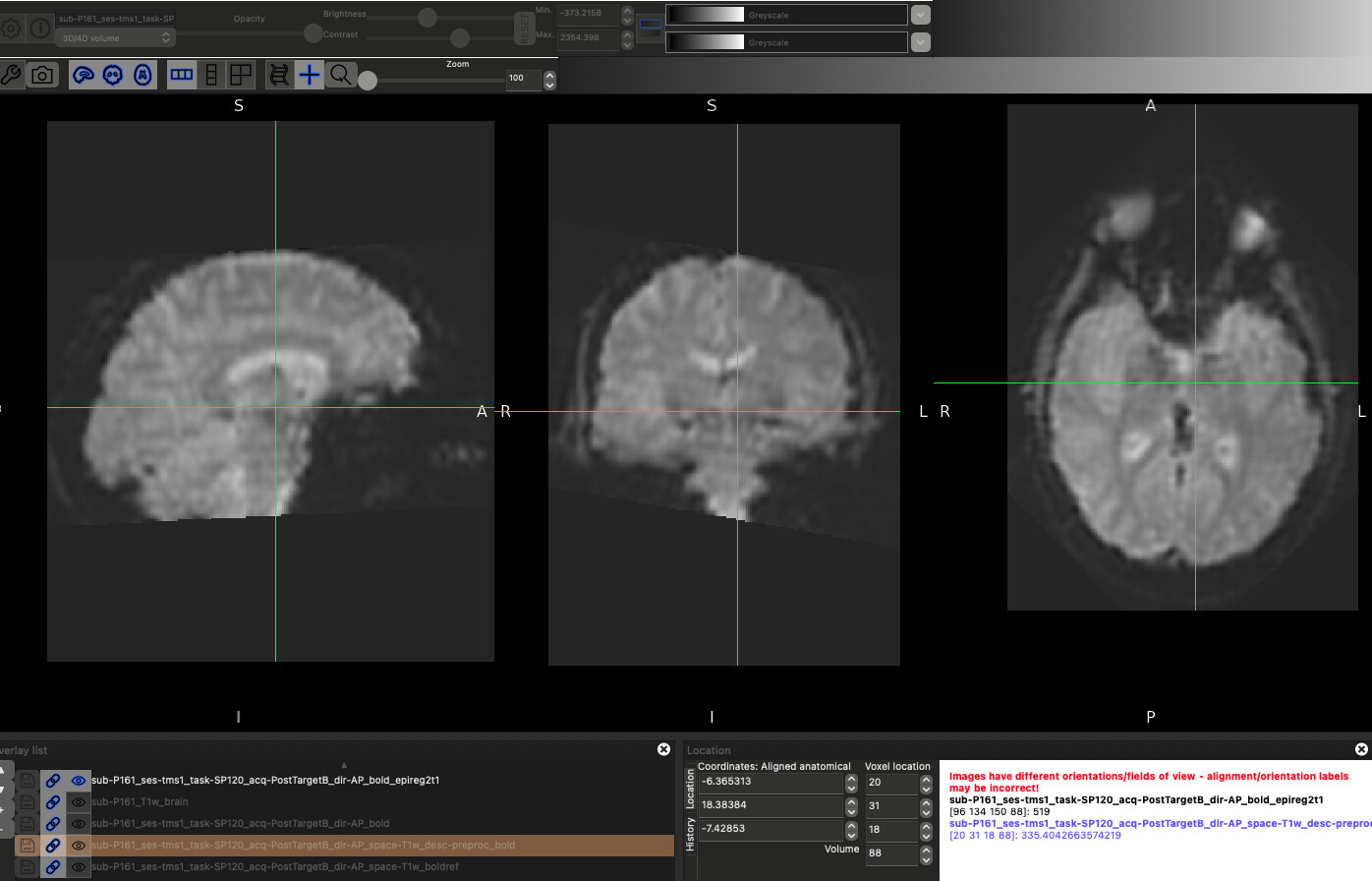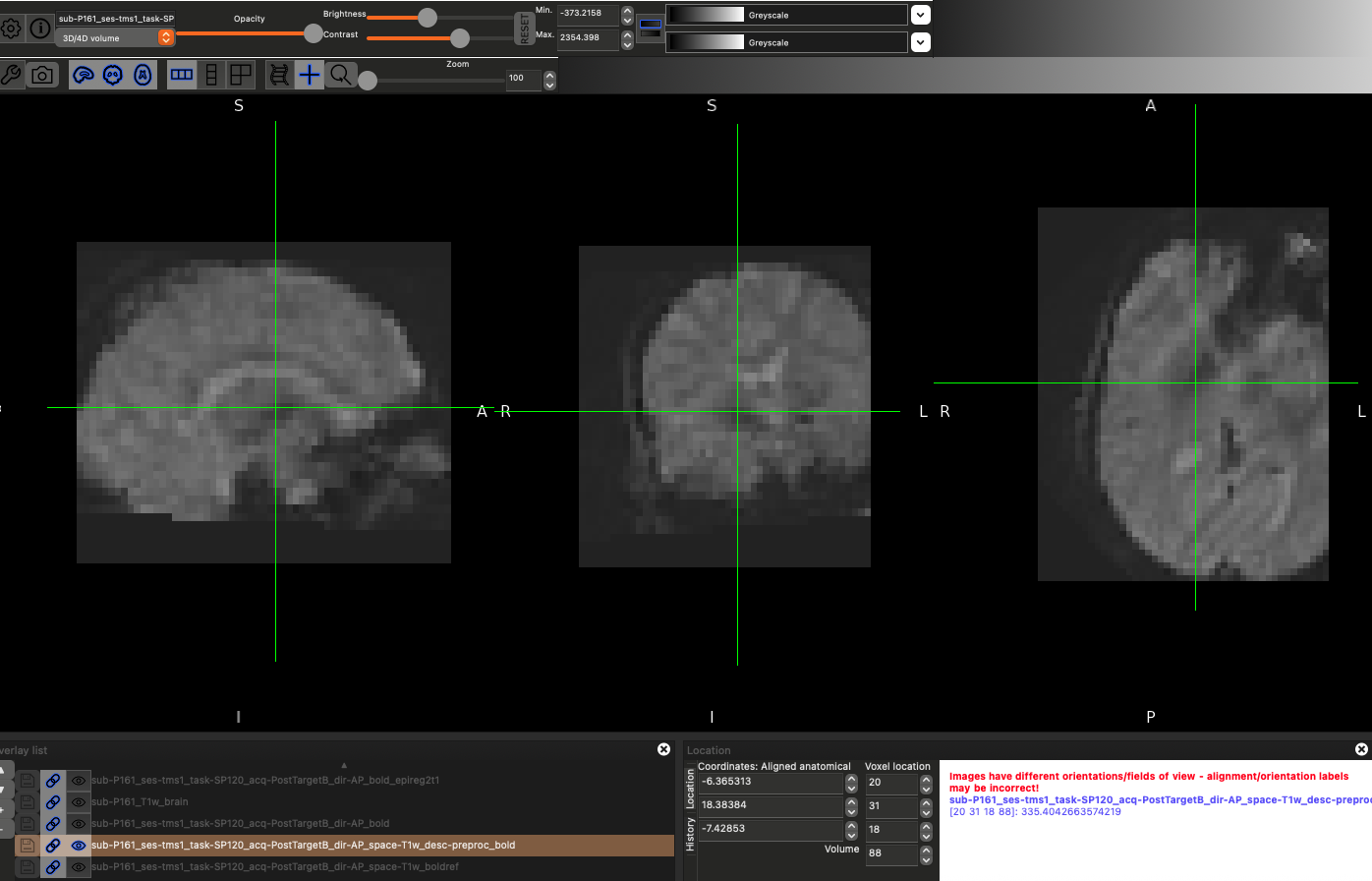 As an example, here is a raw image compared to the fmriprep preprocessing vs a quick epi_reg