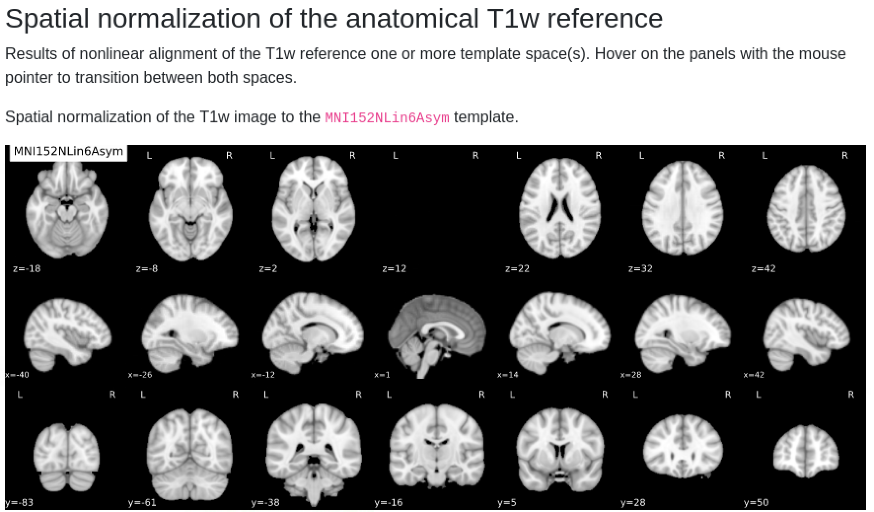 The ouput is fine and no errors were reported… but for every subject the spatial normalisation of the T1w image to the MNI152NLin6Asym template it is missing the z = 12 slice (please see attached screenshot). Is there a obvious reason for this I am missing?