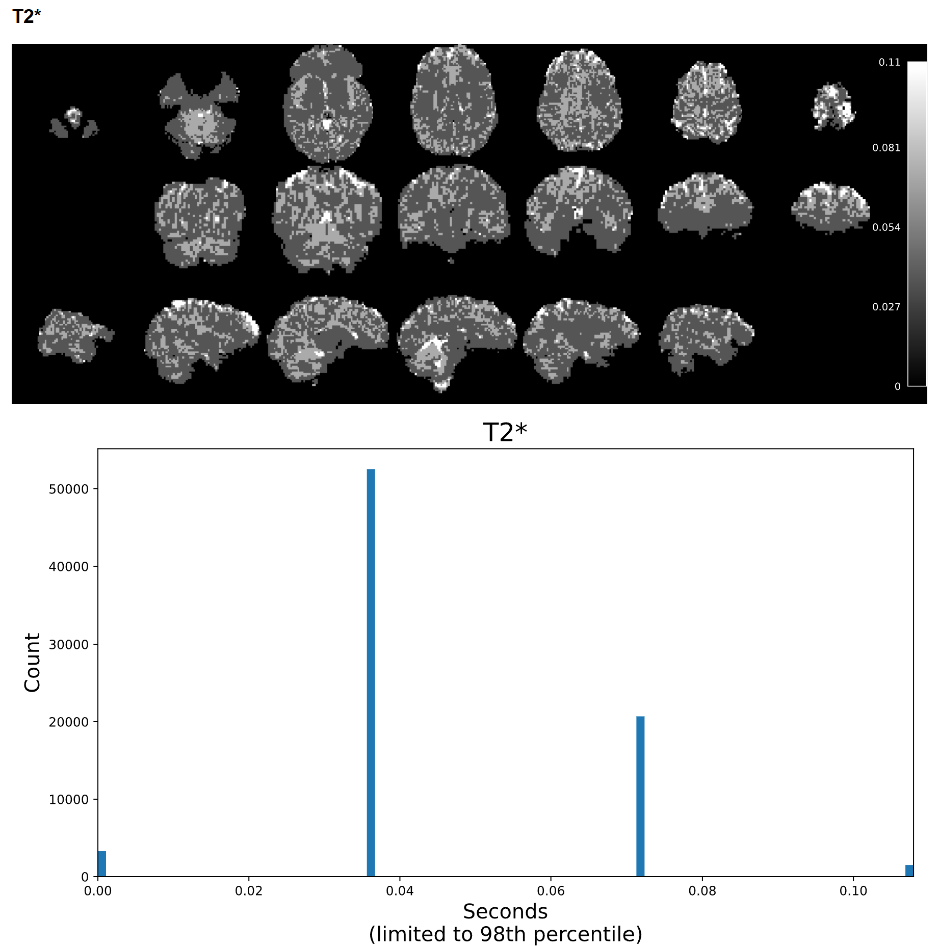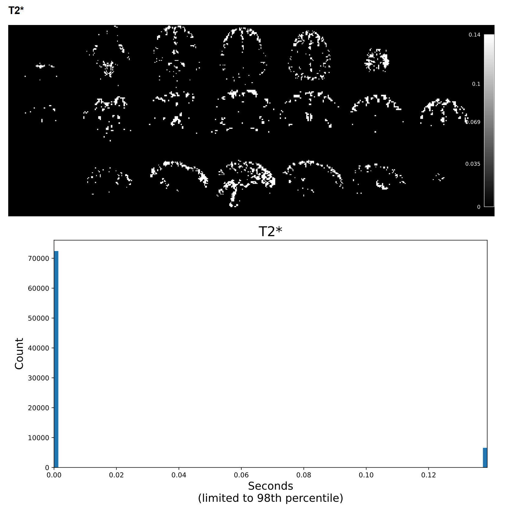 I have a resting state fMRI dataset that I previously processed via tedana 24.0.1; it processed with no problems, but I was having trouble getting an appropriate number of ICA components, potentially due to the high acceleration of the sequence we used. I recently tried running the same data through tedana 26.0.1 using the “robustica” option, and it completed with no errors. However, when reviewing the summary HTML file, the T2* histogram is either blank or only shows a few values. When inspecting the T2starmap.nii.gz, there appear to be a few very extreme voxel values (with values anywhere from tens to hundreds), and most of the brain values consist of a limited range of multiples of each other.