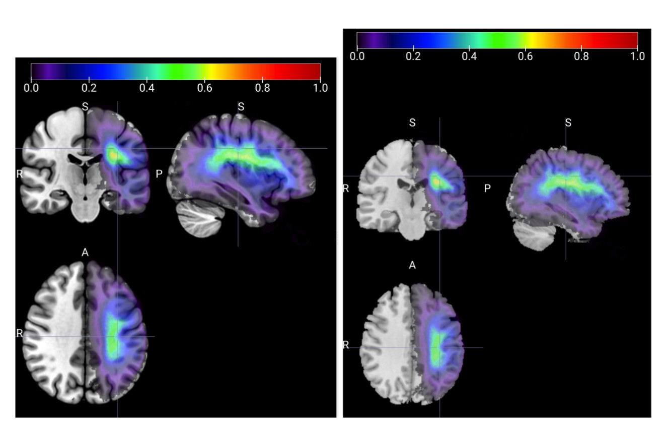 I made a (monolateral) probability map using multiple binary masks registered in AAL atlas.